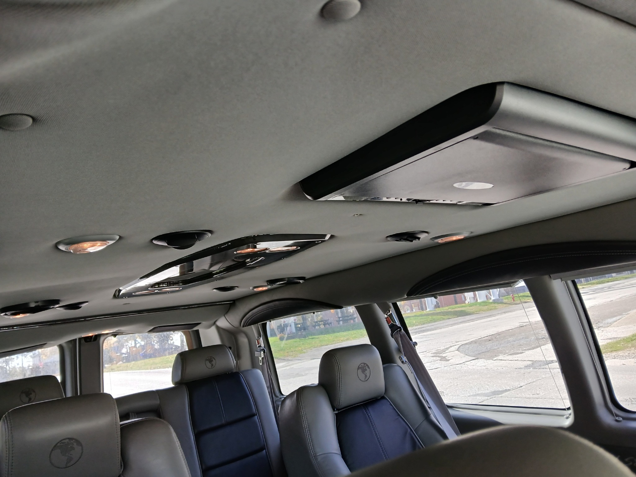 6.0L V8, 3/4 ton. Fold town DVD player-tested/working, heated seats,sunroof, captain chairs mid row, window blinds side and rear, ground effects package with 20 inch alloy wheels, tinted side glass, 110 volt plug ins, power fold rear seat to bed, excellent tires. Loaded and ready to go!!!